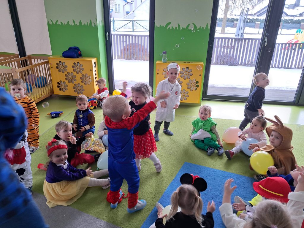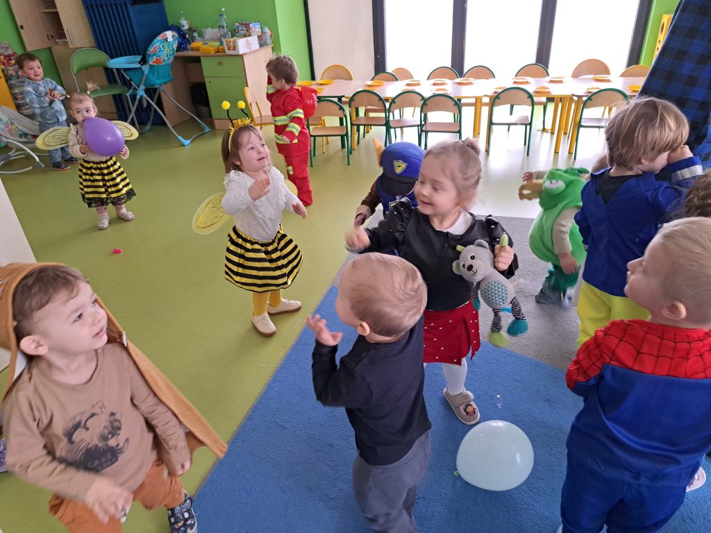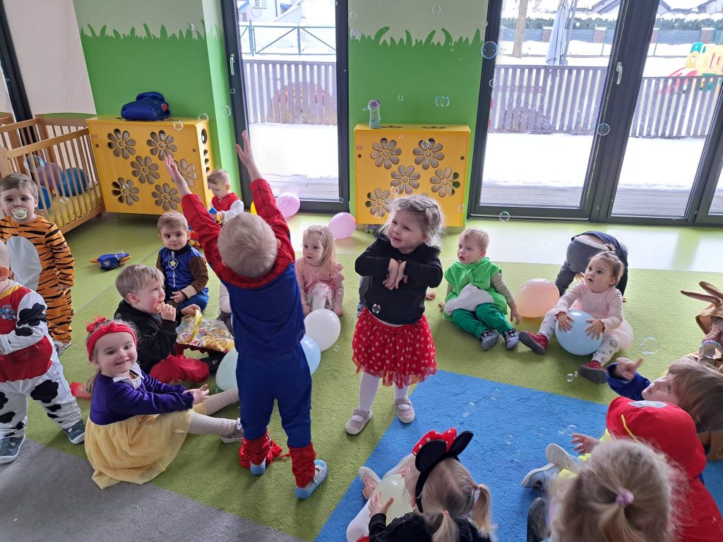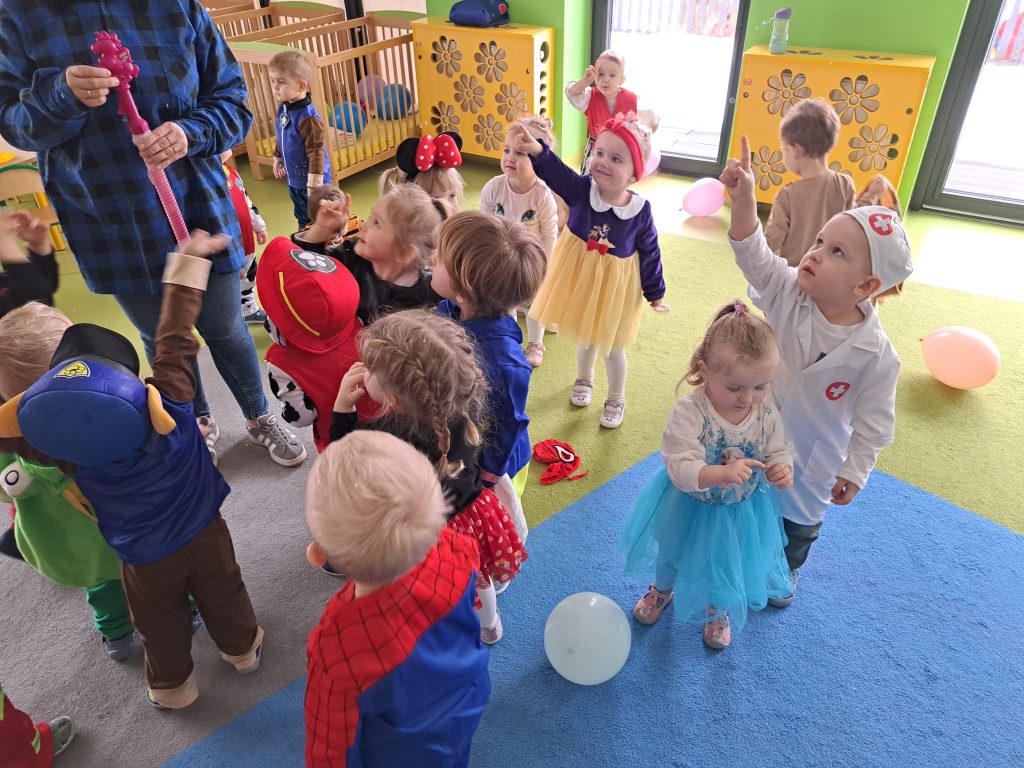 18 lutego w naszym żłobku odbył się długo wyczekiwany Bal Karnawałowy – dzień pełen radości, kolorów i dziecięcej beztroski zabawy. Już od samego rana sale wypełniły się bajkowymi postaciami, superbohaterami, księżniczkami, zwierzątkami i wieloma innymi fantastycznymi przebraniami.