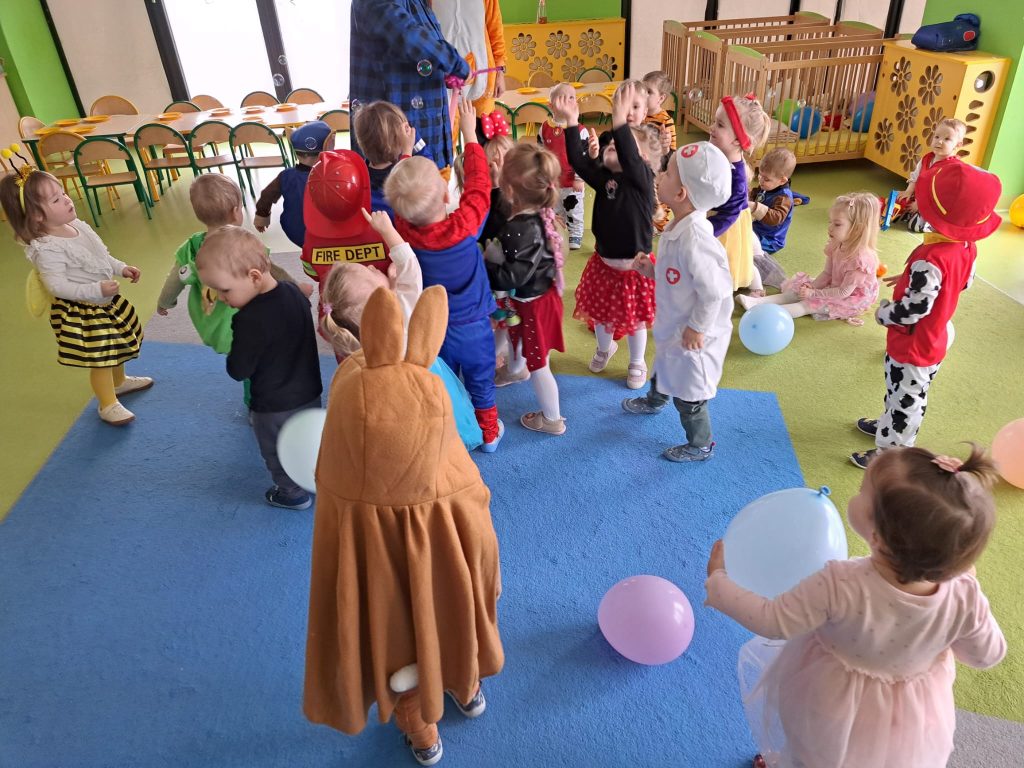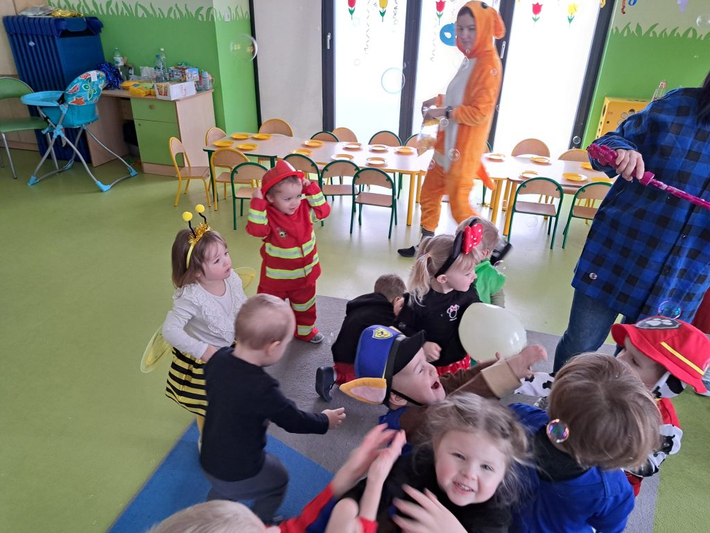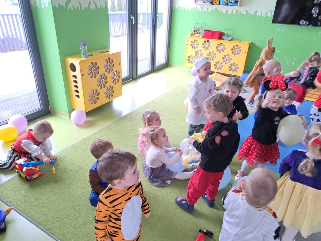 Dzieci z ogromnym entuzjazmem uczestniczyły w animacjach, prezentowały swoje stroje i z uśmiechem brały udział w karnawałowych aktywnościach.