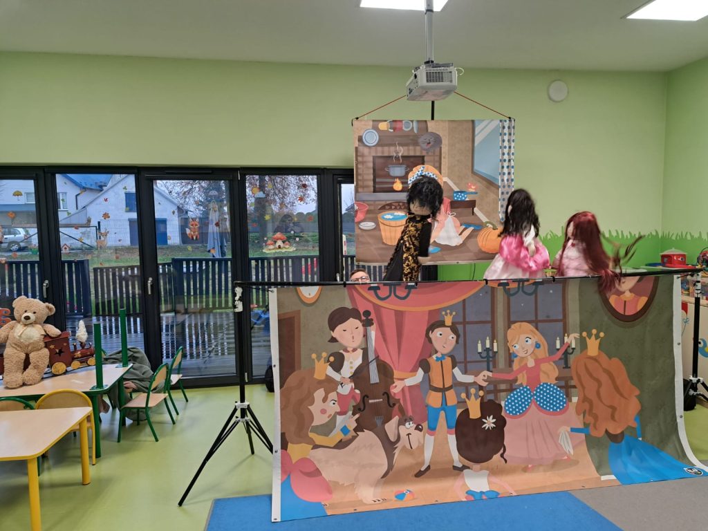 17 listopada w naszym żłobku odbył się wyjątkowy teatrzyk lalek pt. „Kopciuszek”. Dzieci z ogromnym zainteresowaniem śledziły losy dobrej i pracowitej bohaterki, a kolorowe lalki, muzyka oraz bajkowa scenografia sprawiły, że cała historia ożyła na ich oczach. Maluchy reagowały z entuzjazmem – śmiały się, klaskały i z zaciekawieniem obserwowały każdy kolejny fragment przedstawienia.